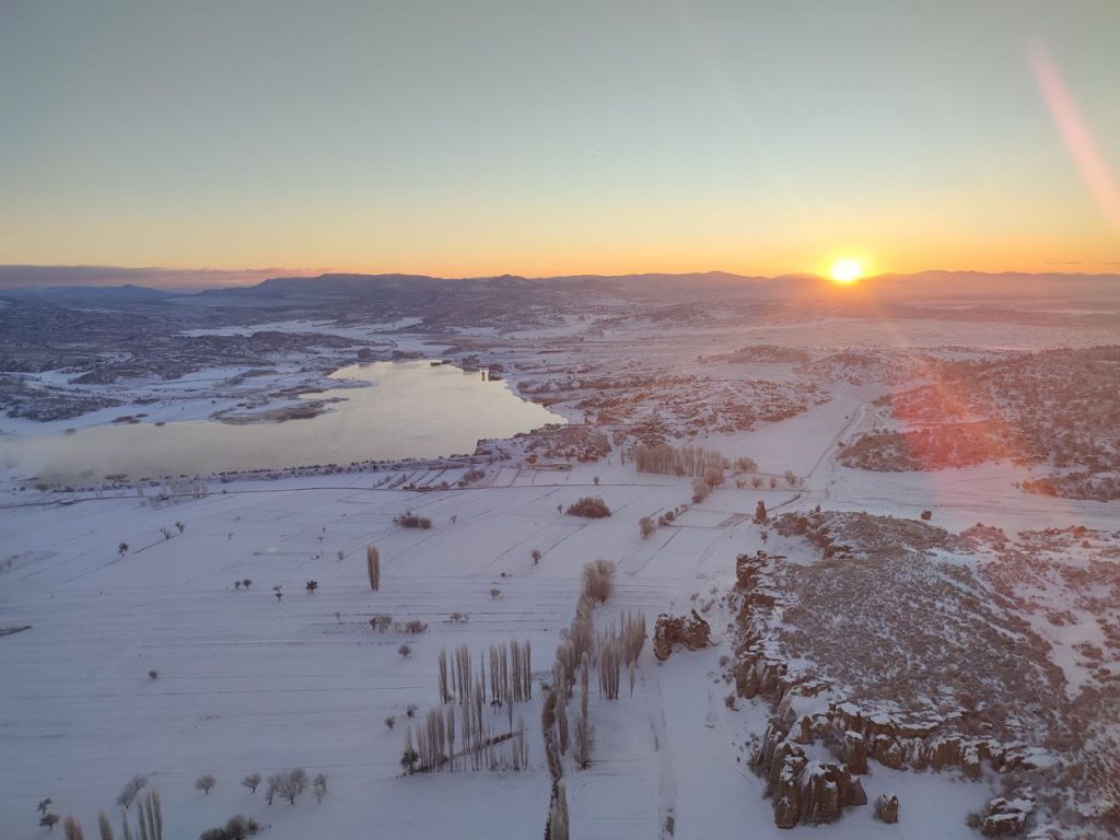 Sıcak hava balonu ile kış aylarında da frigyanın karla kaplanmış eşsiz manzarasının keyfini yaşayabilirsiniz.